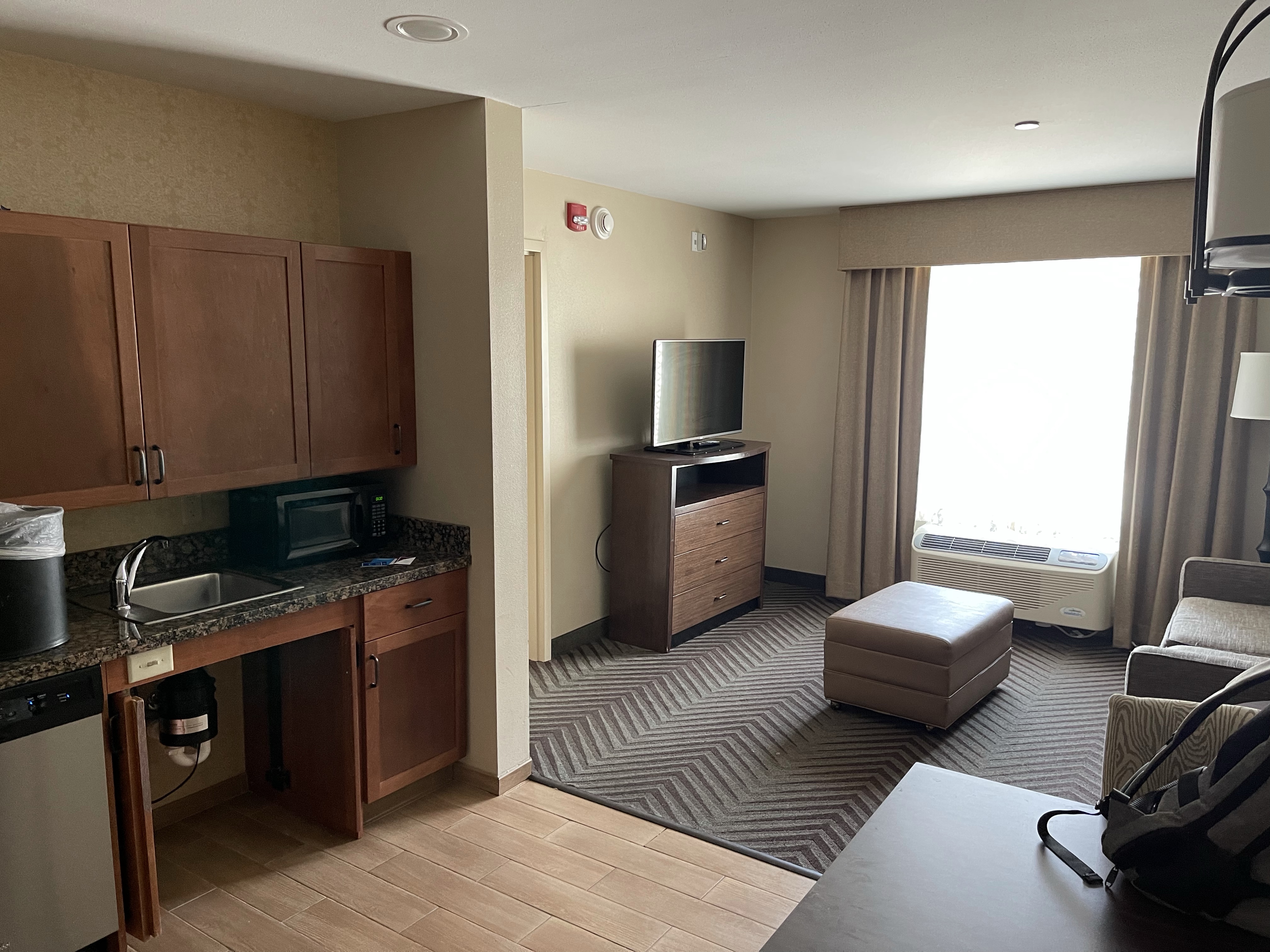 At the last hotel which is a Raddison. We’ve been relegated to the back building that smells like dirt weed and has a card reader that won’t let us in. The magic of NY is gone
