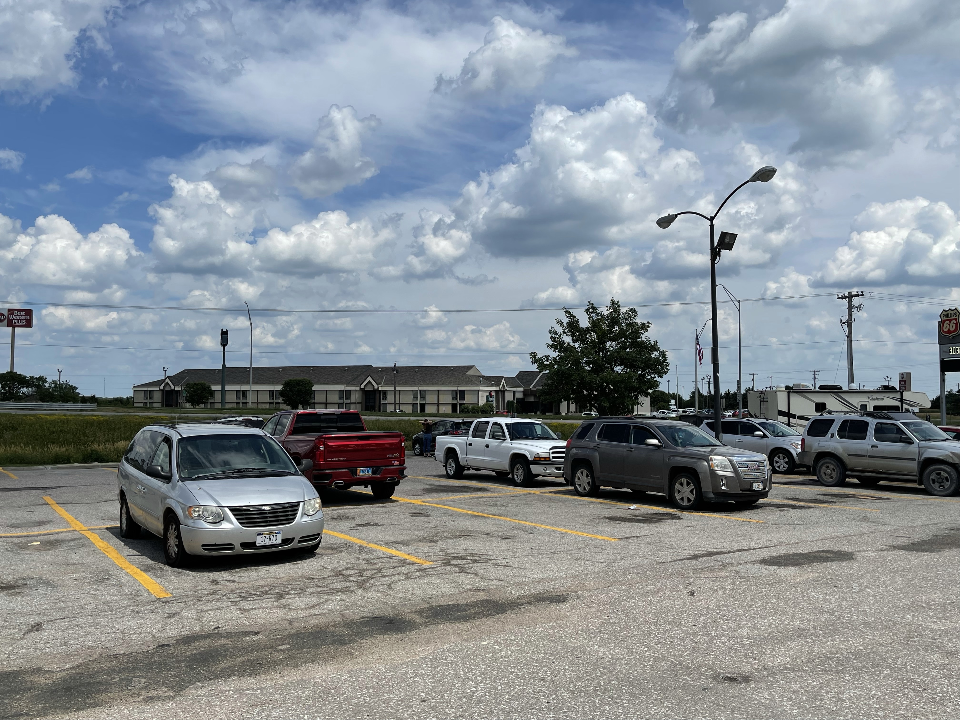 Finally made it out of Nebraska. Staying in Iowa tonight and have a nice upgraded suite. Of course since this is the nicest room and area we have stayed at so far, this is where we get black jacked and Shang Highed